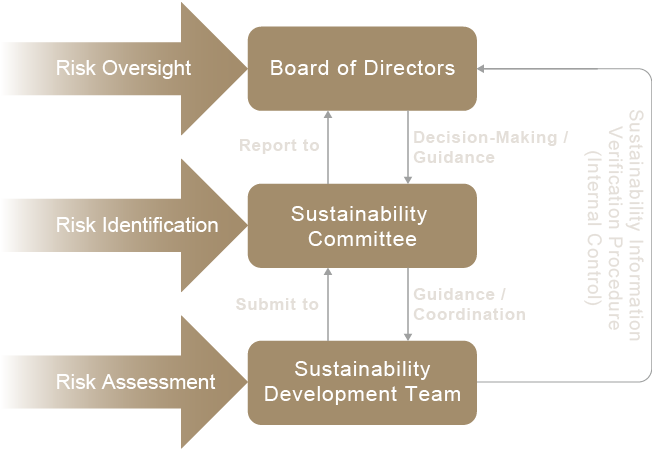 Governance Through the operation of the Sustainability Committee mechanism, combined with the existing internal control and risk management systems, the Committee regularly reports to the Board of Directors, strengthening the Board’s oversight of climate change-related issues.