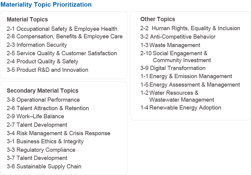 This process aims to identify sustainability topics of concern to internal and external stakeholders, evaluate their influence on MACHVISION, and define the scope and boundaries of sustainability disclosures. By continuously enhancing sustainability performance and information transparency, the Company can implement effective measures to achieve its sustainable development goals.