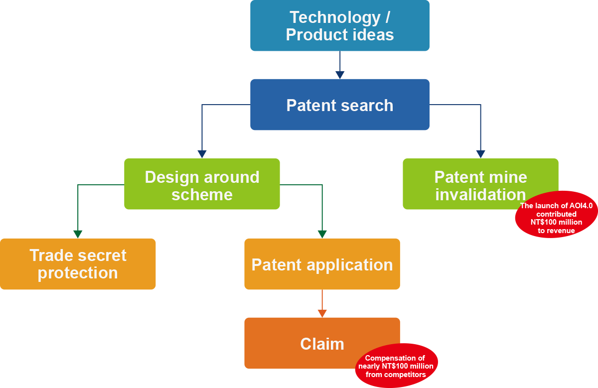 1.At the Company, the Intellectual Property Department is responsible for making patent searches for R&D cases, assisting the R&D team in designing around and obtaining patent rights, and checking and maintaining intellectual property cases. Whenever necessary, the Intellectual Property Department may invalidate/revoke the competitors’ patents to make sure that the Company’ technological development and market share are protected and linked to the business goals. The R&D flowchart is shown below.