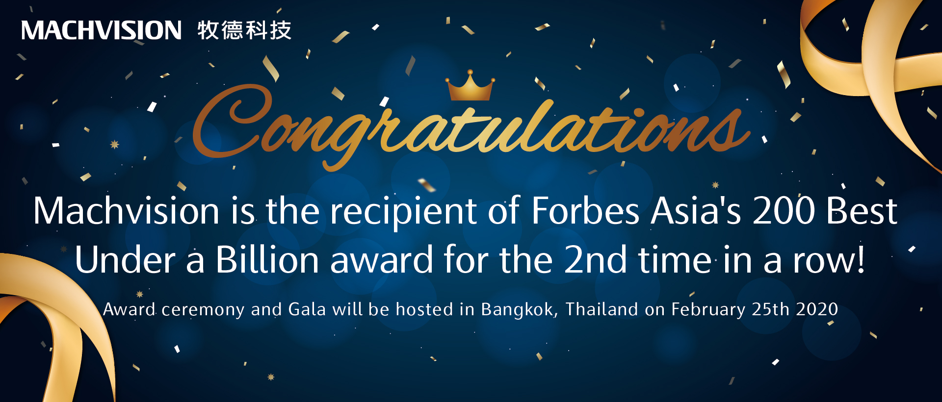 Machvision is the recipient of Forbes Asia's 200 Best Under a Billion award for the 2nd time in a row!