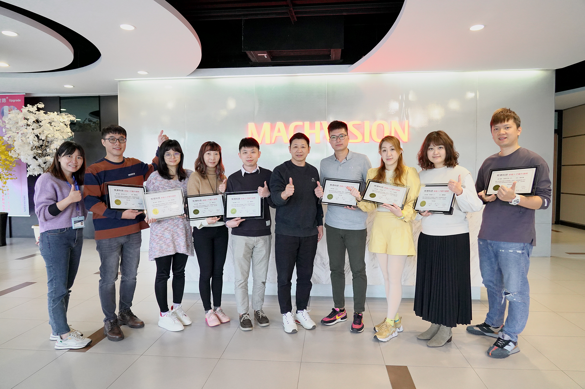 牧德科技今天頒發晉升獎給優秀的夥伴們,晉升儀式由總經理陳復生代表頒發,表揚本次主管職晉升夥伴2位,職等以及職務晉升夥伴6位,所有晉升夥伴皆獲頒專屬於自己姓名的晉升獎牌。